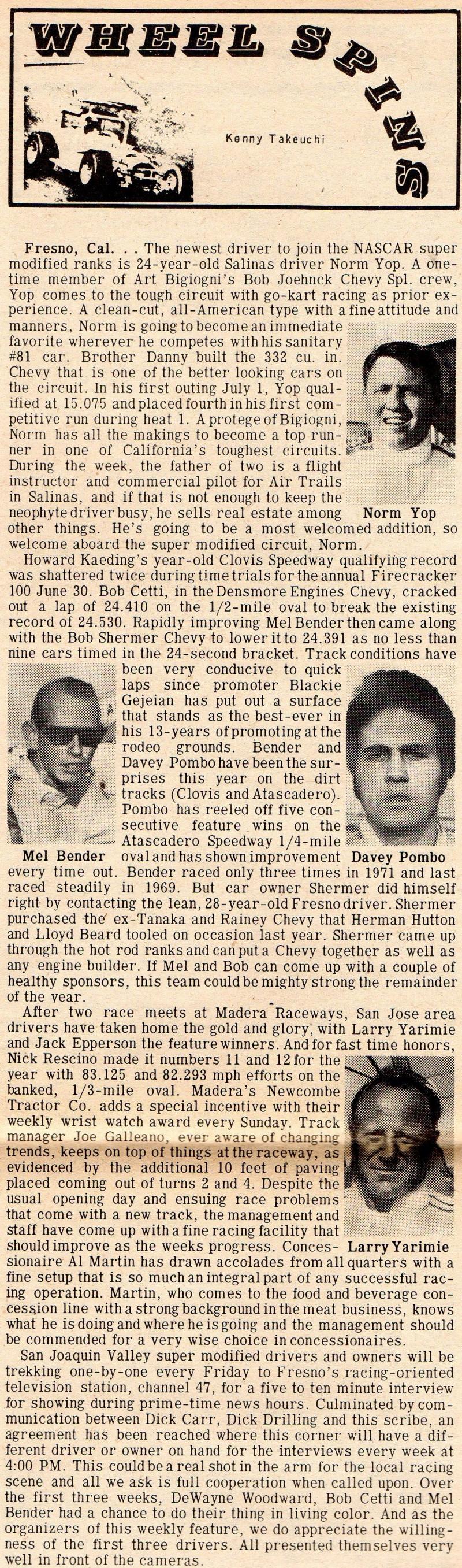 Kenny's weekly column "Wheel Spins" appeared in Racing Wheels newspaper for more than ten years